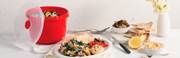 - Finely chop the cauliflower, then place in the Microsafe™ Rice Cooker 2.75L with 2 tbsp water and a sprinkle of salt. Fit the lid with the vent open, then cook on high (900W) for 2 minutes.