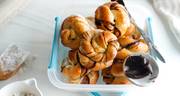 - Take each strip and twist it until it looks like a plait, and then roll it into a snail shell shape. Place each knot on a lined baking sheet.