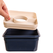 - Removable divided tray keeps ingredients separate.